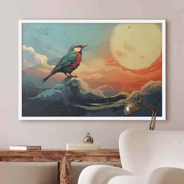 Poster Paesaggio artistico con uccello e cielo vibrante f45060
