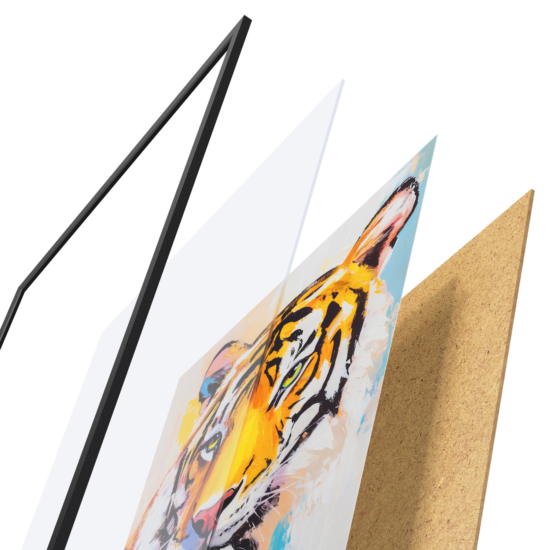 Il poster è composto da cornice, plexiglass, immagine stampata e supporto in truciolato. Il poster può essere immediatamente appeso alla parete grazie ai supporti sul retro.