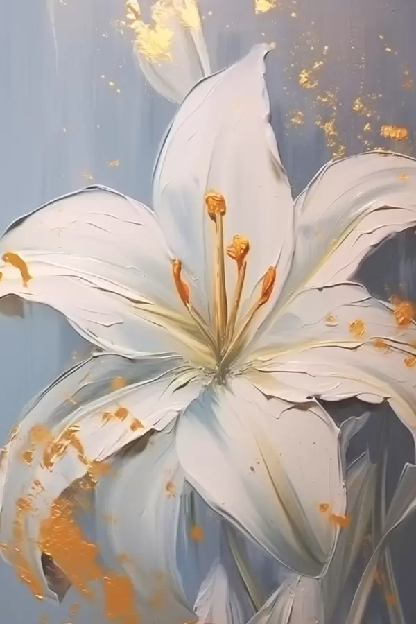 Poster Giglio bianco con accenti gialli su sfondo blu f45078