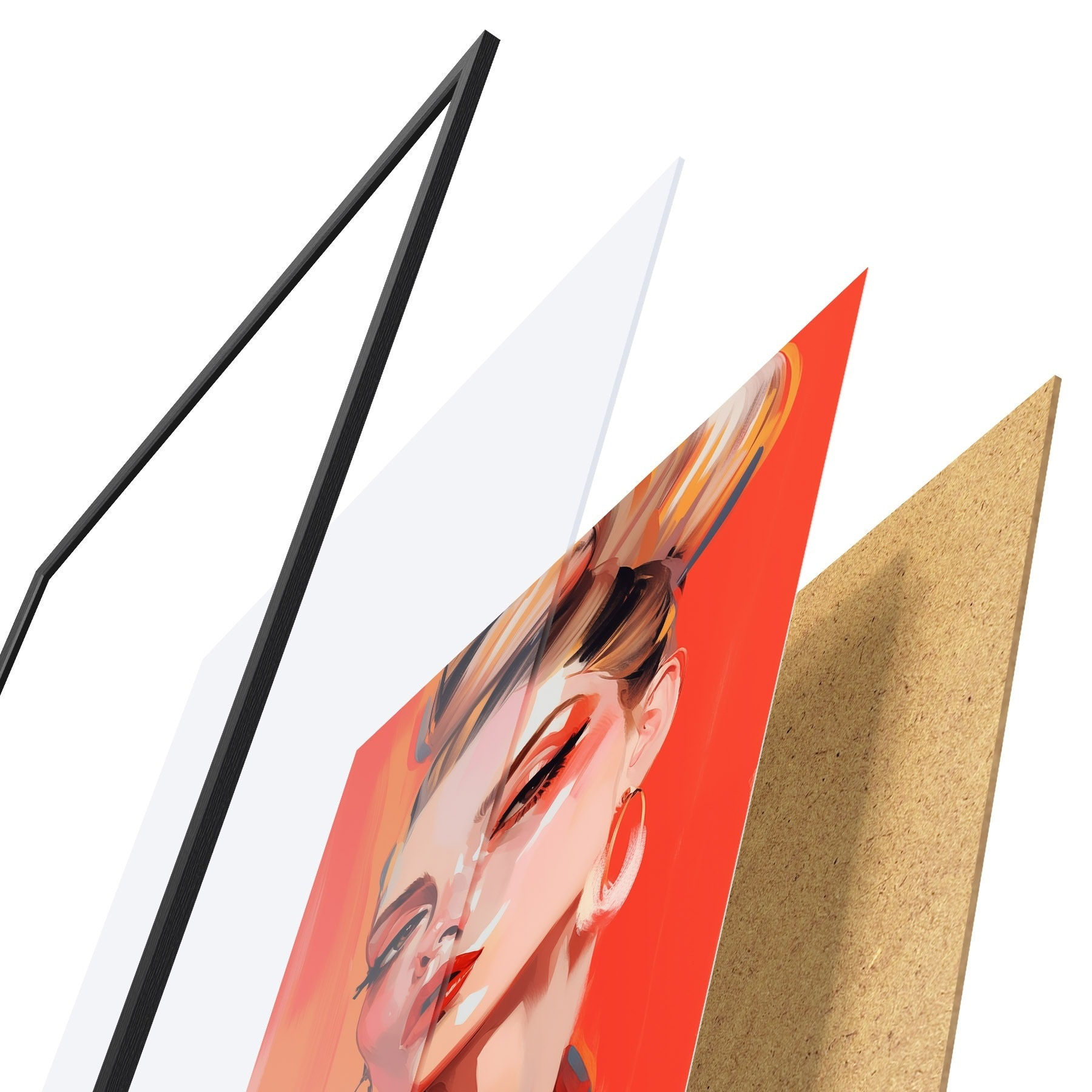 Il poster è composto da cornice, plexiglass, immagine stampata e supporto in truciolato. Il poster può essere immediatamente appeso alla parete grazie ai supporti sul retro.