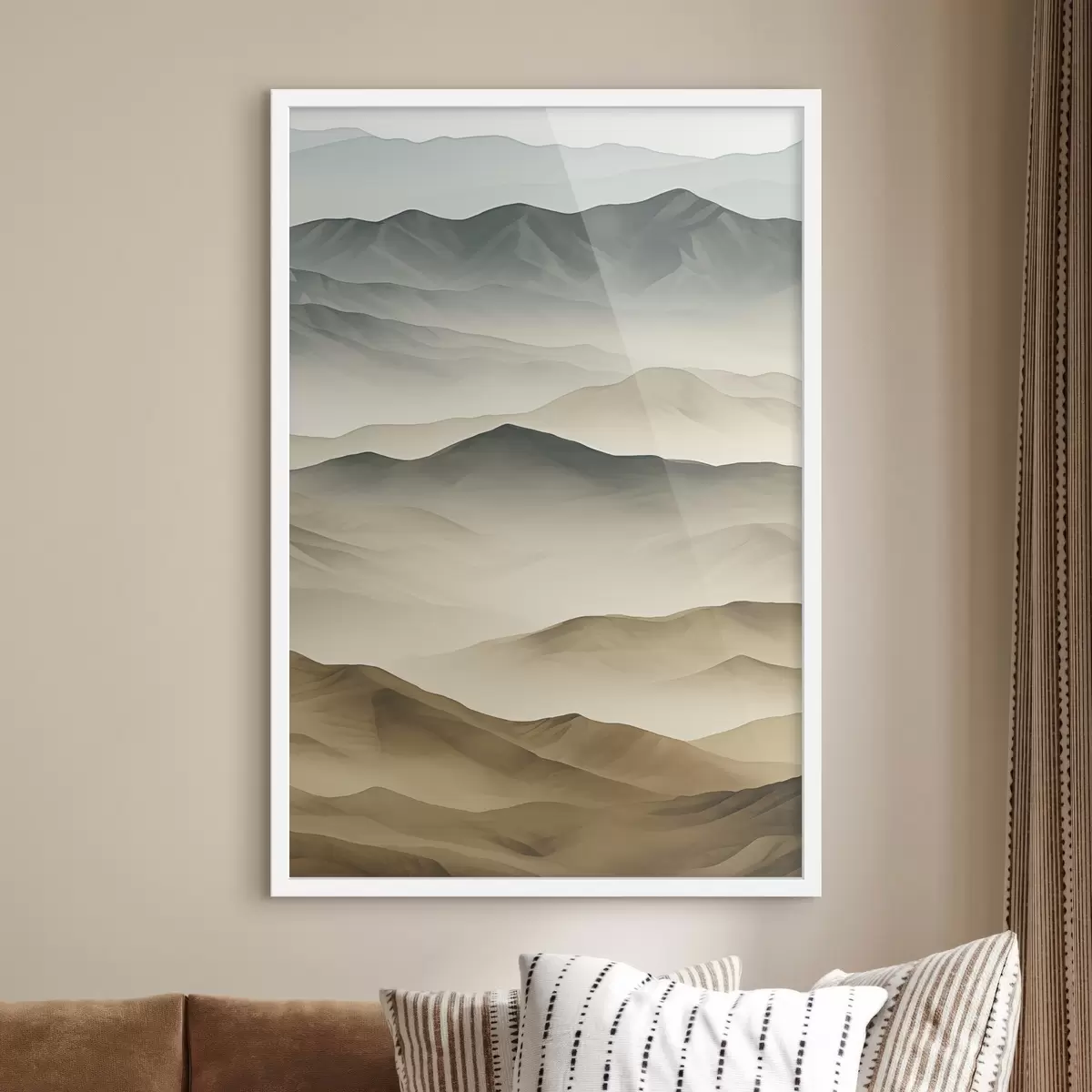 Poster montagne, strati, nebbia, sfumatura morbida, naturale, beige, astratto, paesaggio Nr f45095