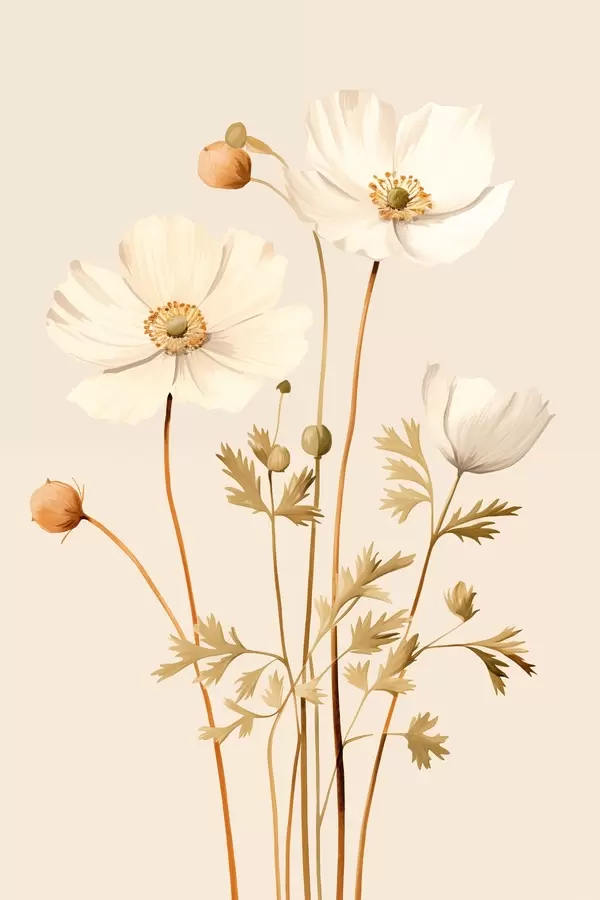 Poster fiore, botanica, sfondo beige, toni tenui, petali, pianta, vintage, minimale Nr f45099
