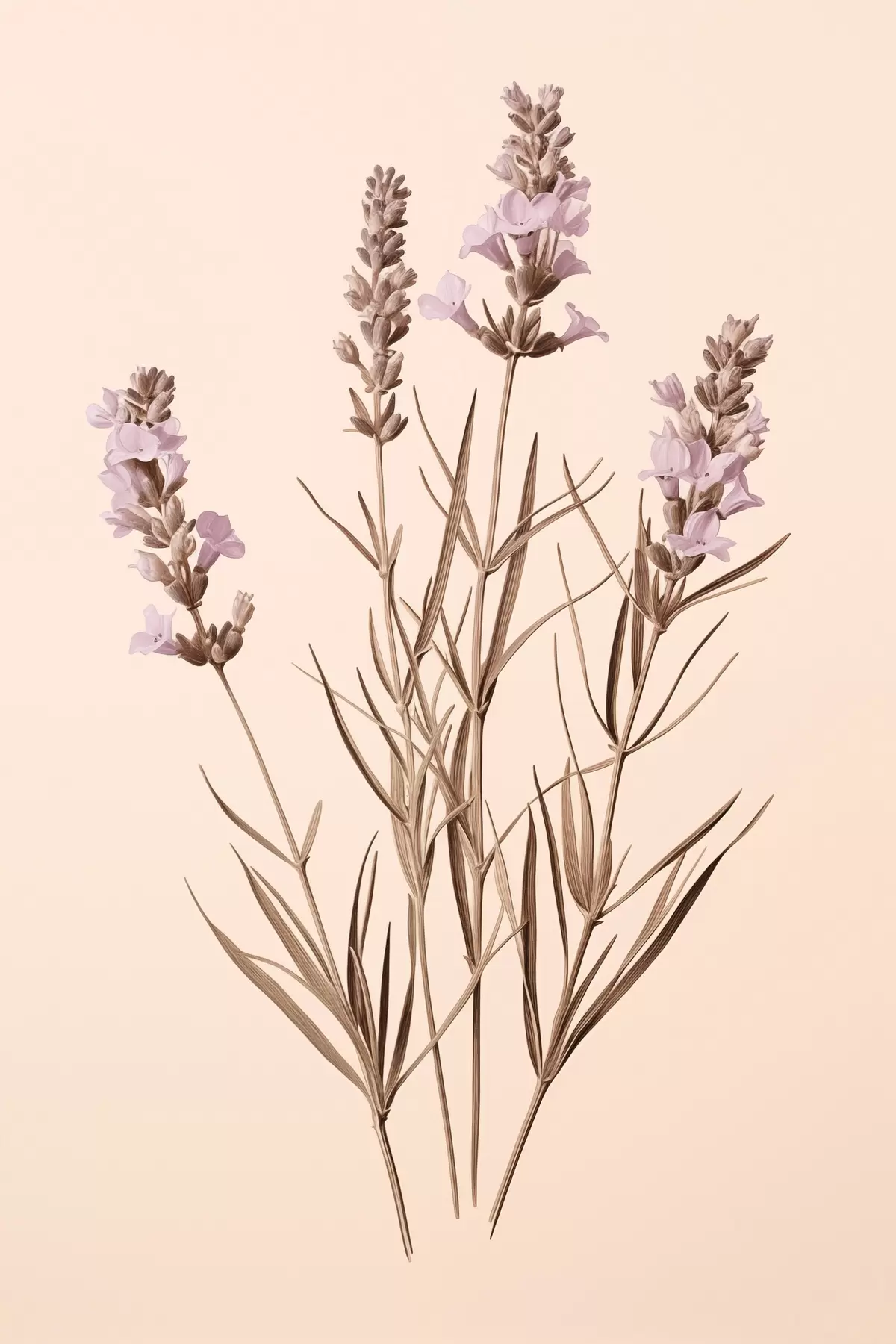 Poster lavanda, botanica, sfondo beige, viola tenue, foglie, floreale, naturale, stelo f45100