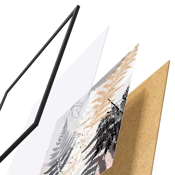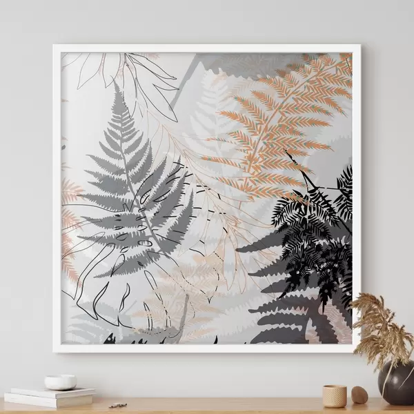 Poster felce, foglie astratte, motivo, design piatto, contrasto, toni di grigio, botanica, sovrapposizione Nr f45101