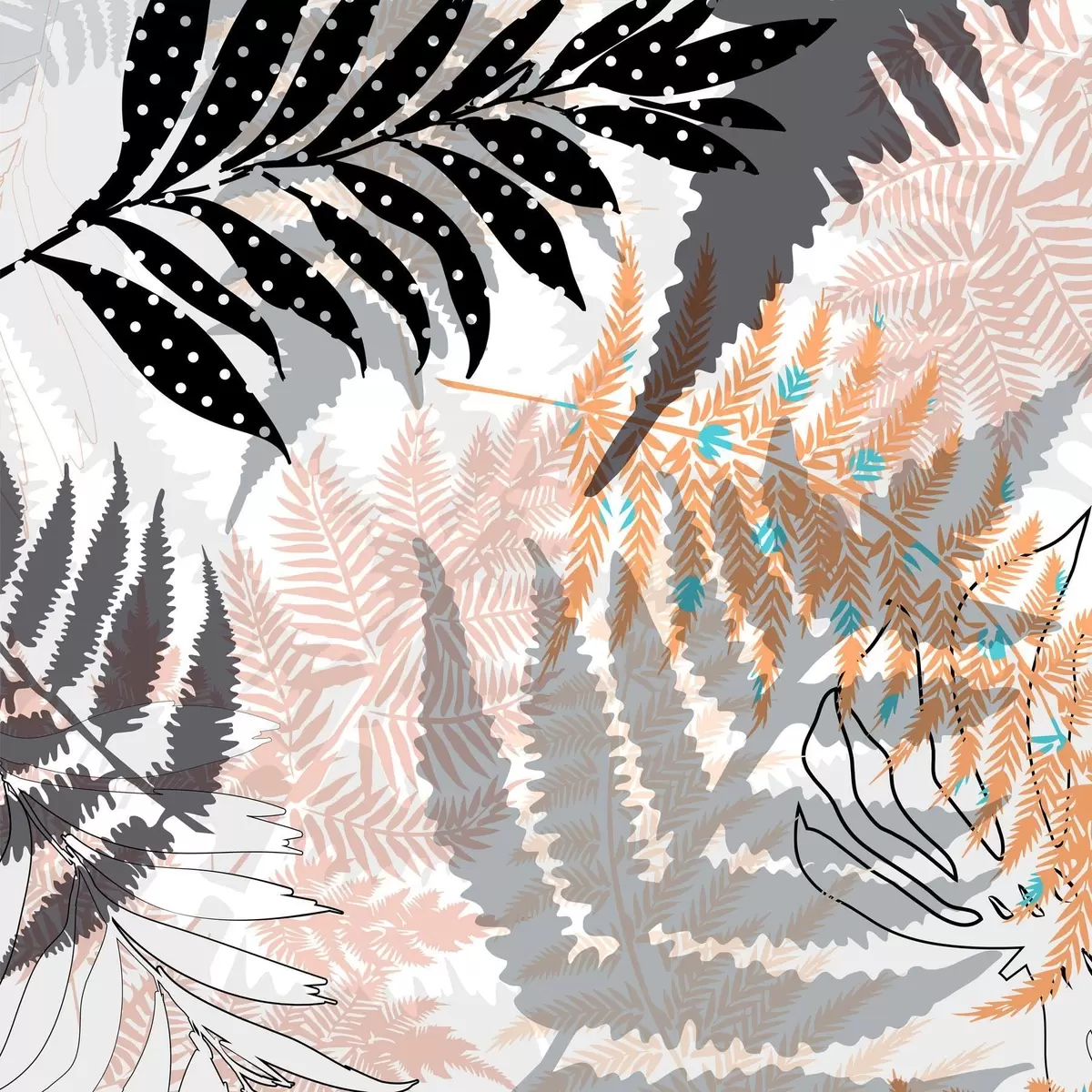 Poster foglie tropicali, grafica, texture, beige e nero, silhouette, contemporaneo, pianta f45103