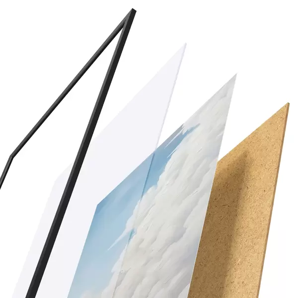 Il poster è composto da cornice, plexiglass, immagine stampata e supporto in truciolato. Il poster può essere immediatamente appeso alla parete grazie ai supporti sul retro.