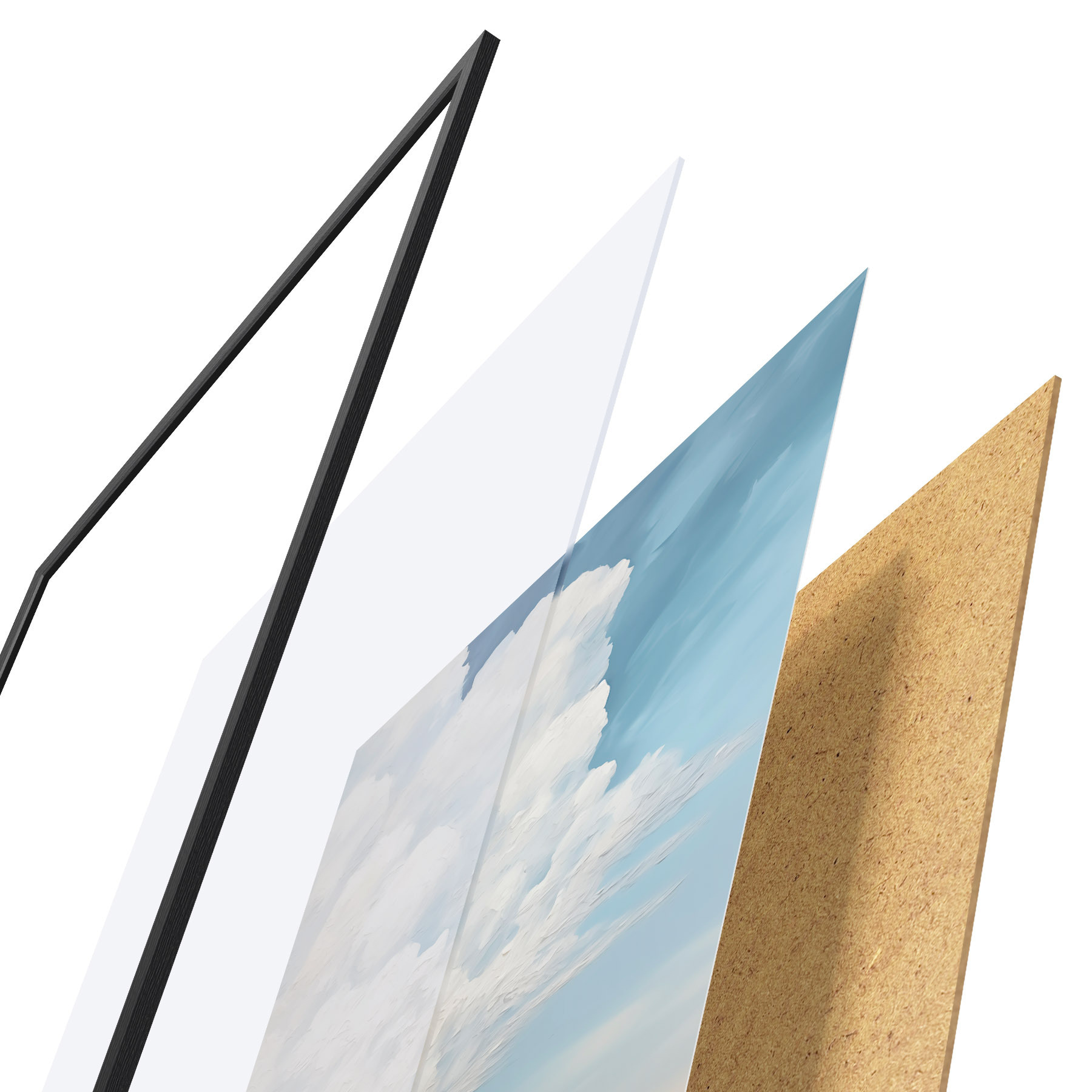 Il poster è composto da cornice, plexiglass, immagine stampata e supporto in truciolato. Il poster può essere immediatamente appeso alla parete grazie ai supporti sul retro.
