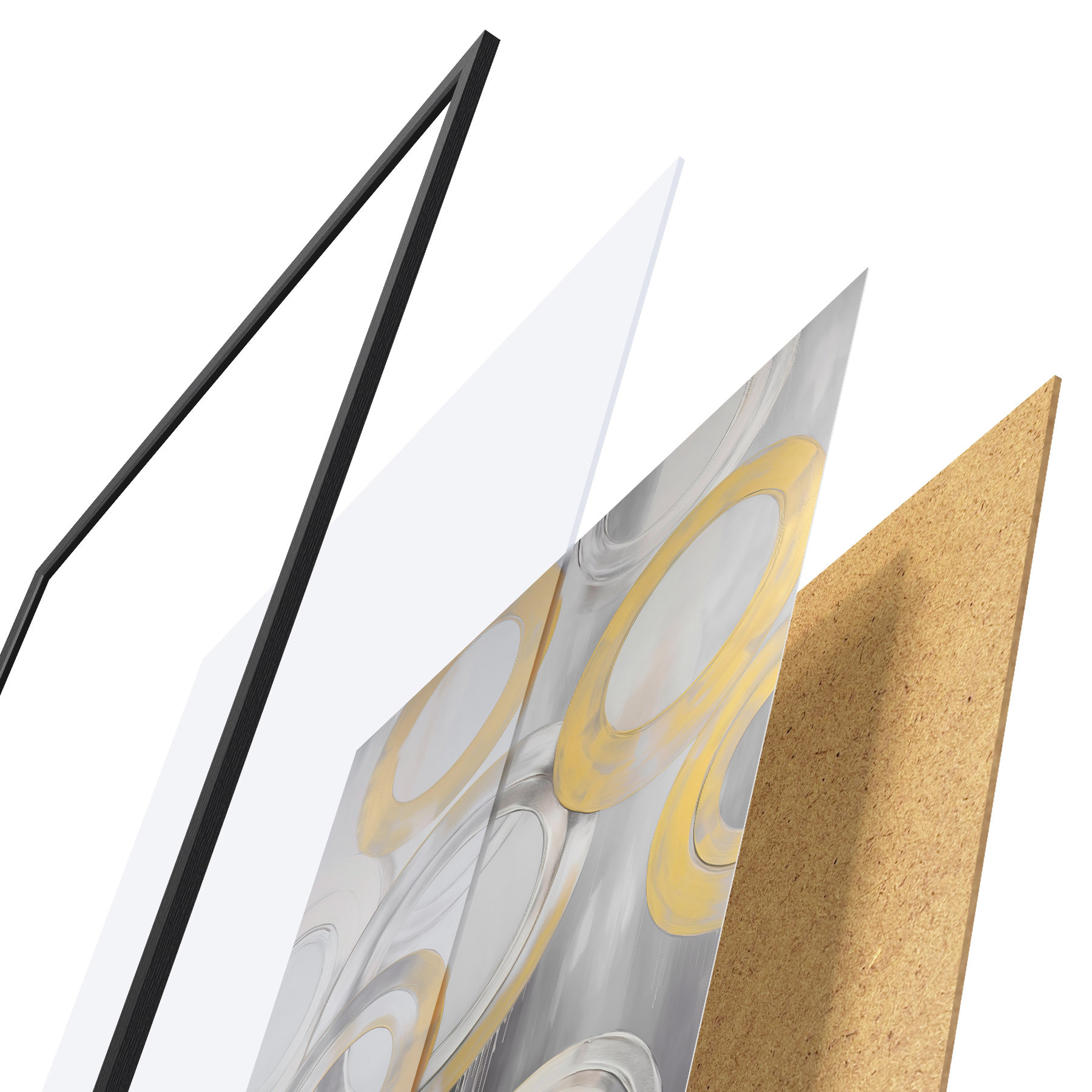 Il poster è composto da cornice, plexiglass, immagine stampata e supporto in truciolato. Il poster può essere immediatamente appeso alla parete grazie ai supporti sul retro.