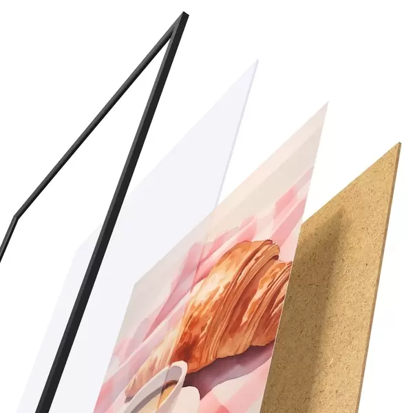 Il poster è composto da cornice, plexiglass, immagine stampata e supporto in truciolato. Il poster può essere immediatamente appeso alla parete grazie ai supporti sul retro.