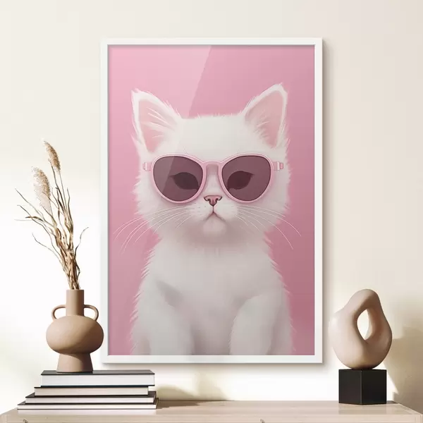 Poster Gatto bianco con occhiali rosa Nr f45145