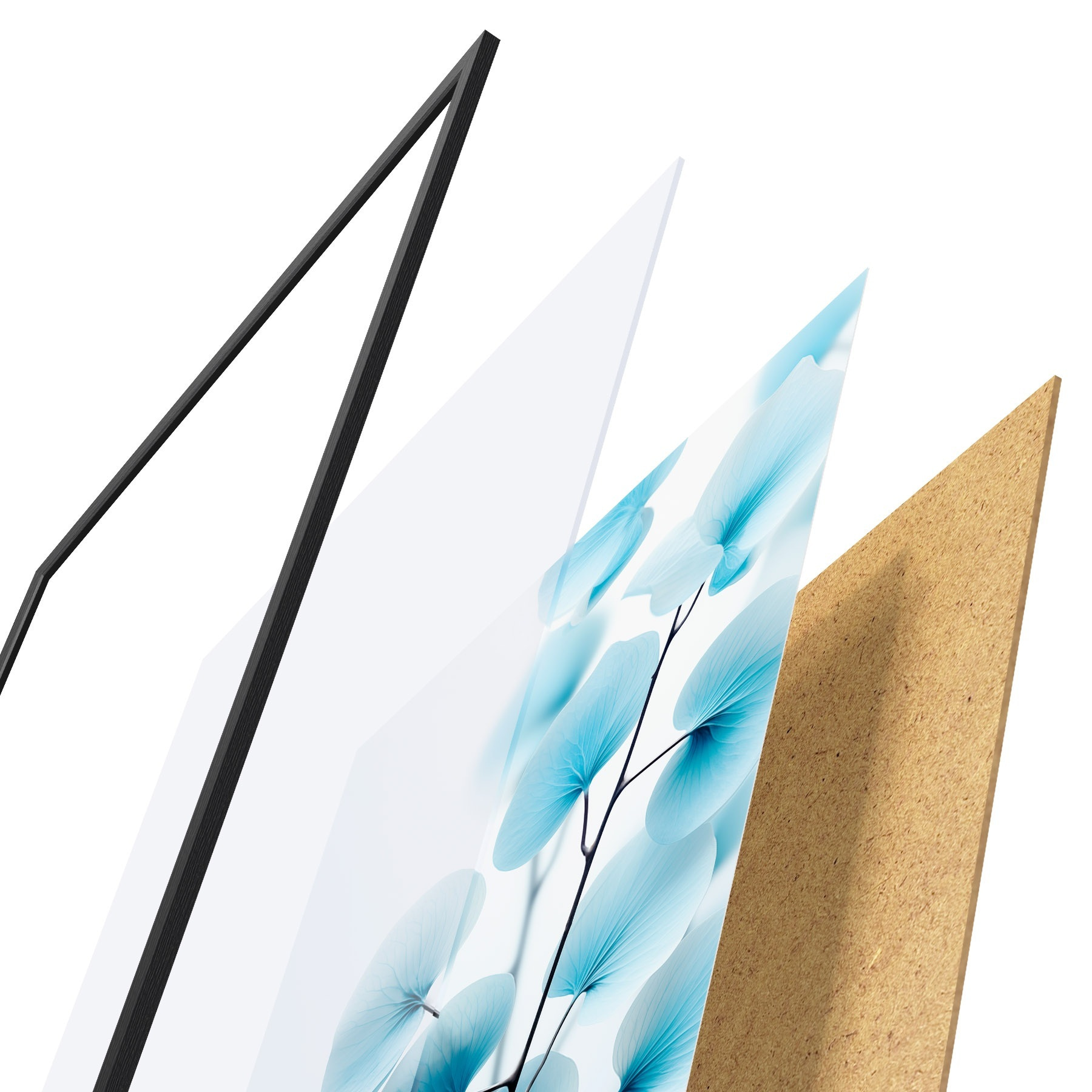 Il poster è composto da cornice, plexiglass, immagine stampata e supporto in truciolato. Il poster può essere immediatamente appeso alla parete grazie ai supporti sul retro.