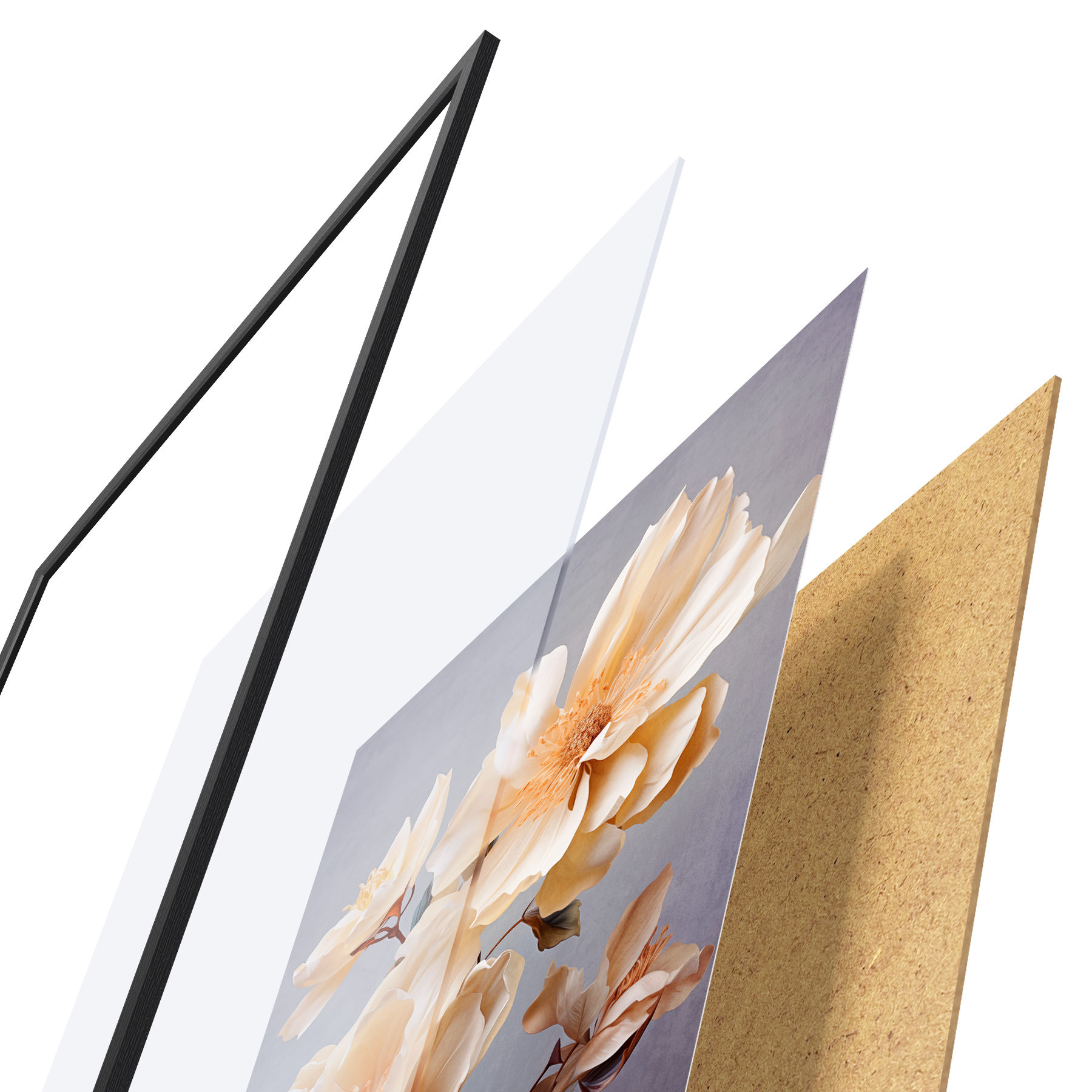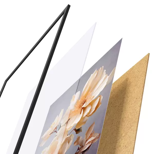 Il poster è composto da cornice, plexiglass, immagine stampata e supporto in truciolato. Il poster può essere immediatamente appeso alla parete grazie ai supporti sul retro.
