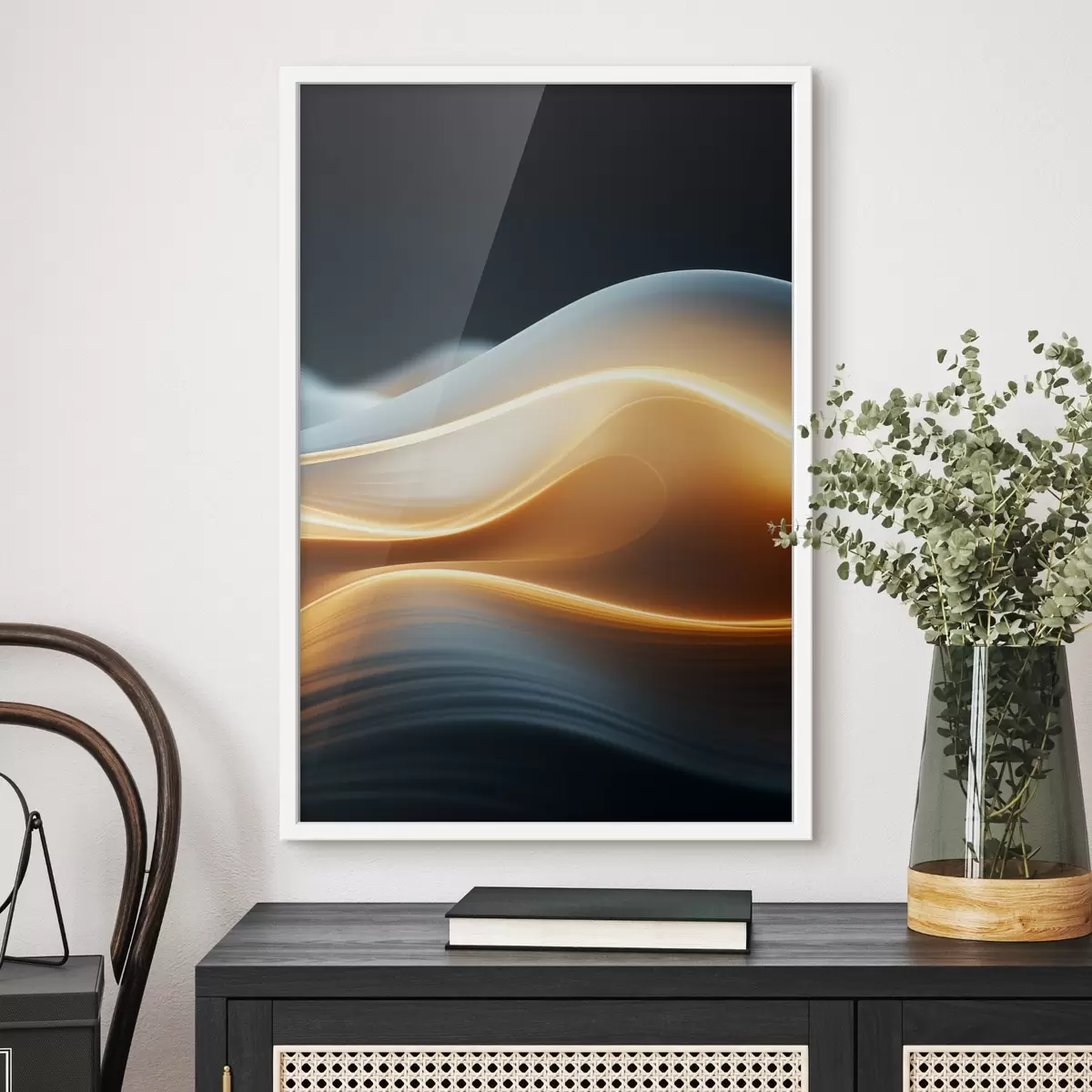 Poster Forme astratte e fluide con linee arancioni, curve e linee morbide, composizione dinamica, sfondo scuro Nr f45183