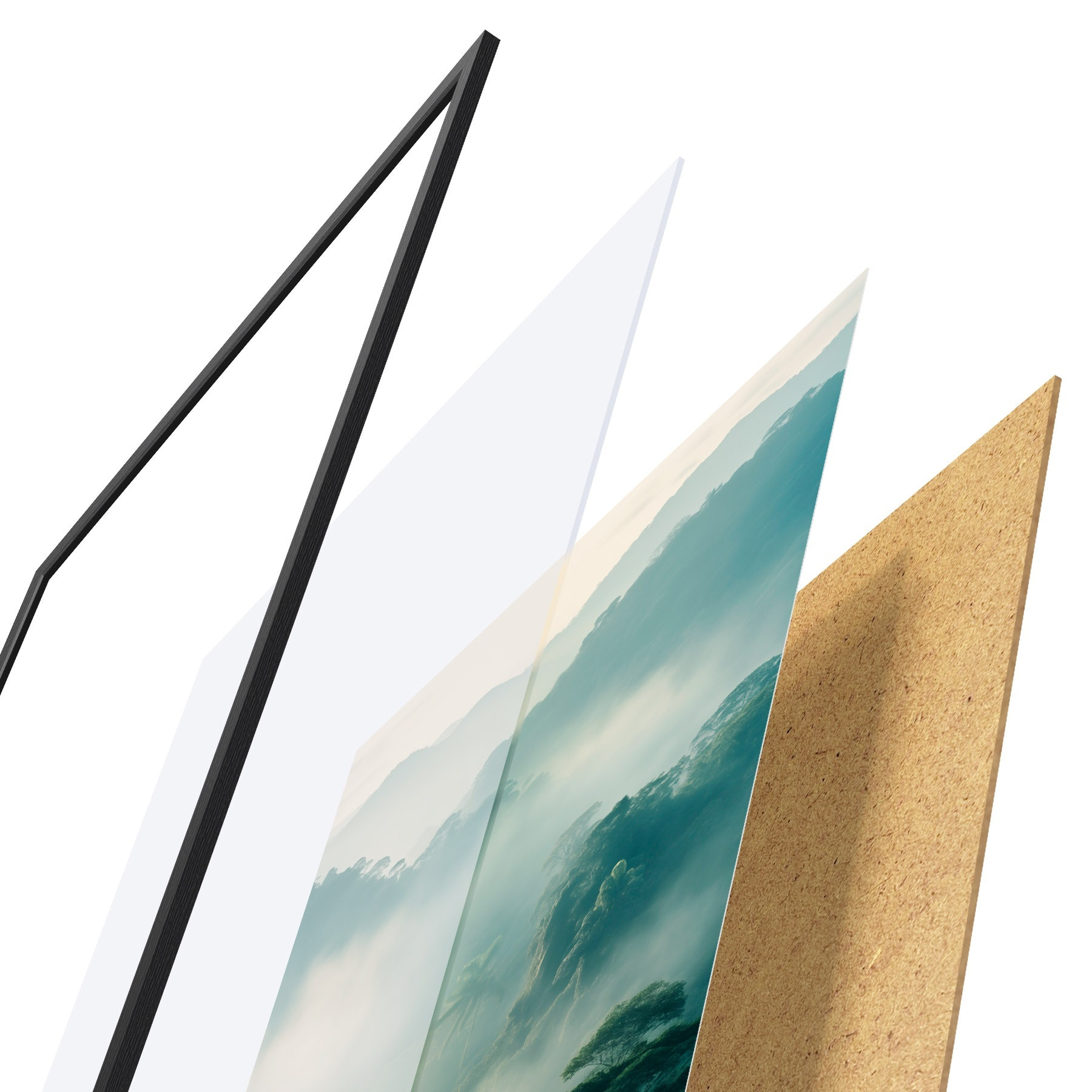 Il poster è composto da cornice, plexiglass, immagine stampata e supporto in truciolato. Il poster può essere immediatamente appeso alla parete grazie ai supporti sul retro.