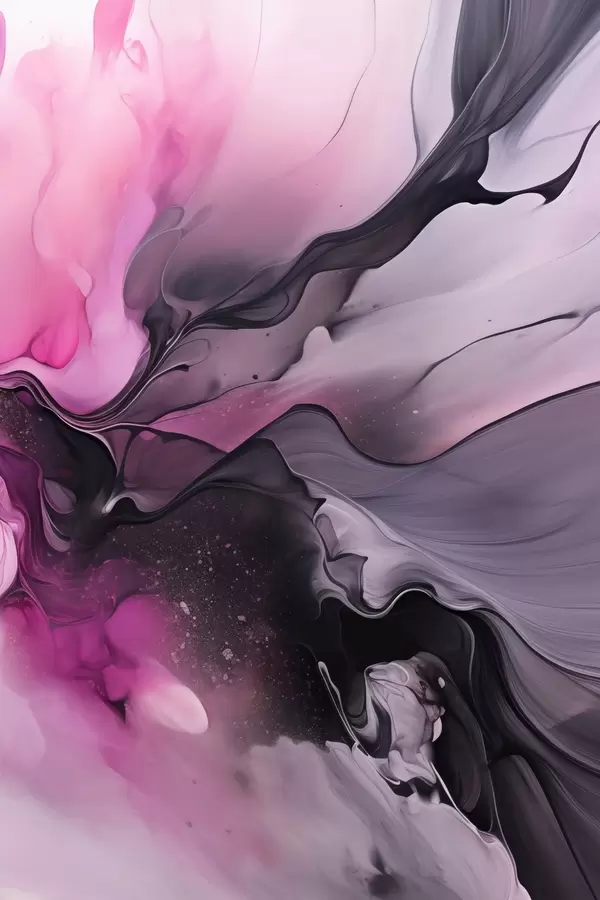 Poster Vortici astratti di rosa, viola e nero si fondono in una composizione fluida e organica, creando un senso di movimento f45196