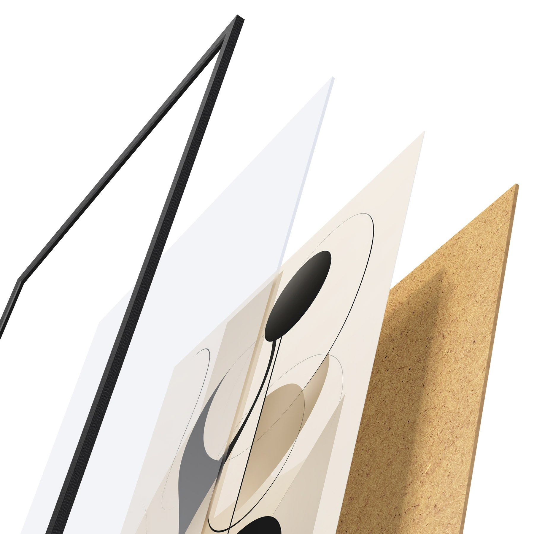 Il poster è composto da cornice, plexiglass, immagine stampata e supporto in truciolato. Il poster può essere immediatamente appeso alla parete grazie ai supporti sul retro.