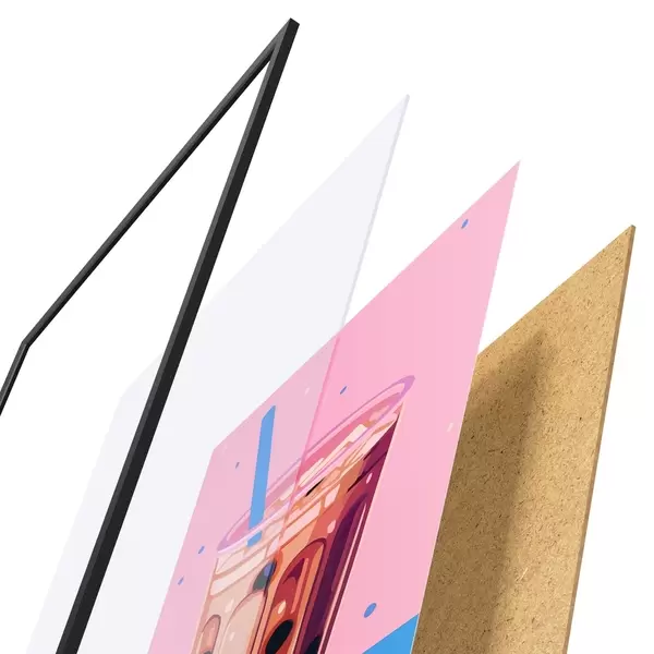 Il poster è composto da cornice, plexiglass, immagine stampata e supporto in truciolato. Il poster può essere immediatamente appeso alla parete grazie ai supporti sul retro.