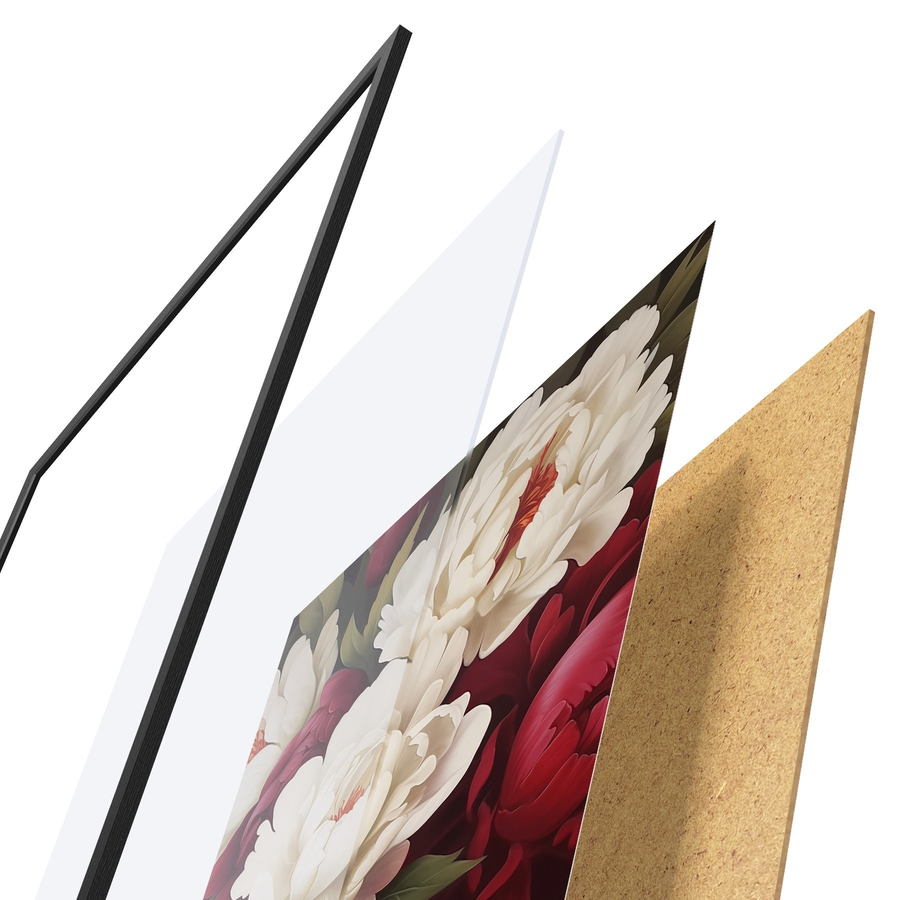Il poster è composto da cornice, plexiglass, immagine stampata e supporto in truciolato. Il poster può essere immediatamente appeso alla parete grazie ai supporti sul retro.