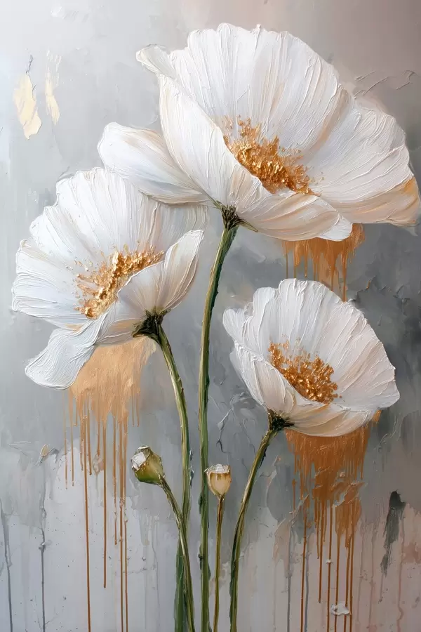 Poster Margherite bianche: pittura volumetrica su sfondo blu f45240