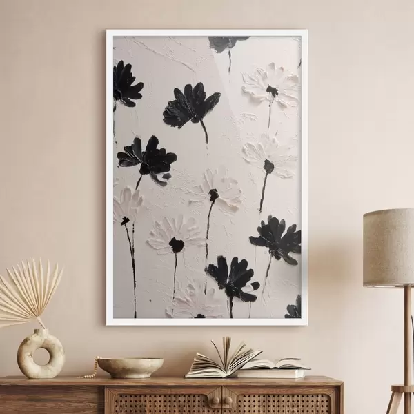 Poster Fiori volumetrici: composizione a impasto in toni monocromatici f45247