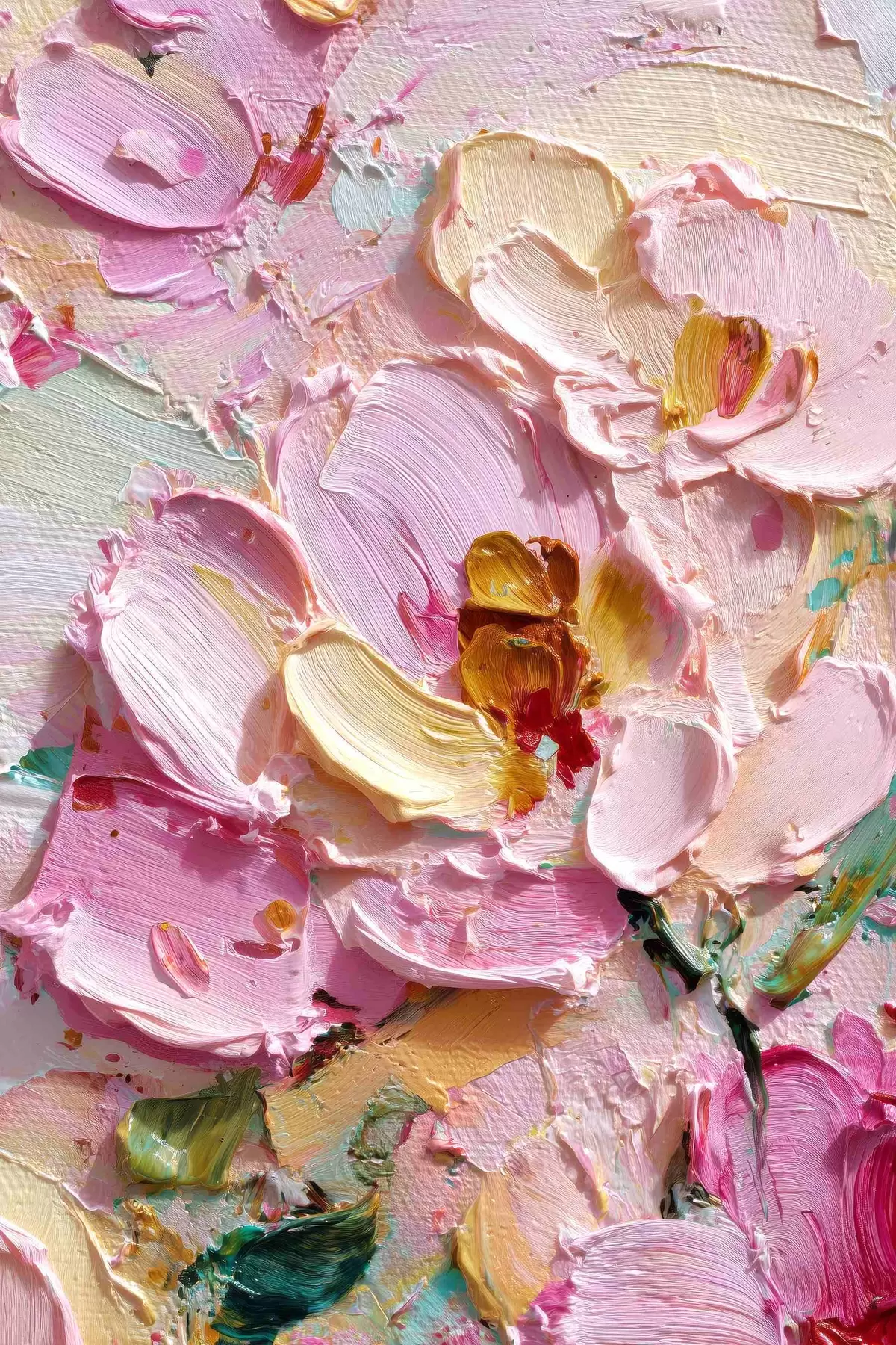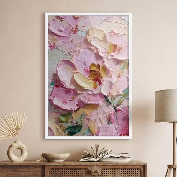 Poster Magnolie rosa: pittura materica con pennellate dimensionali f45249