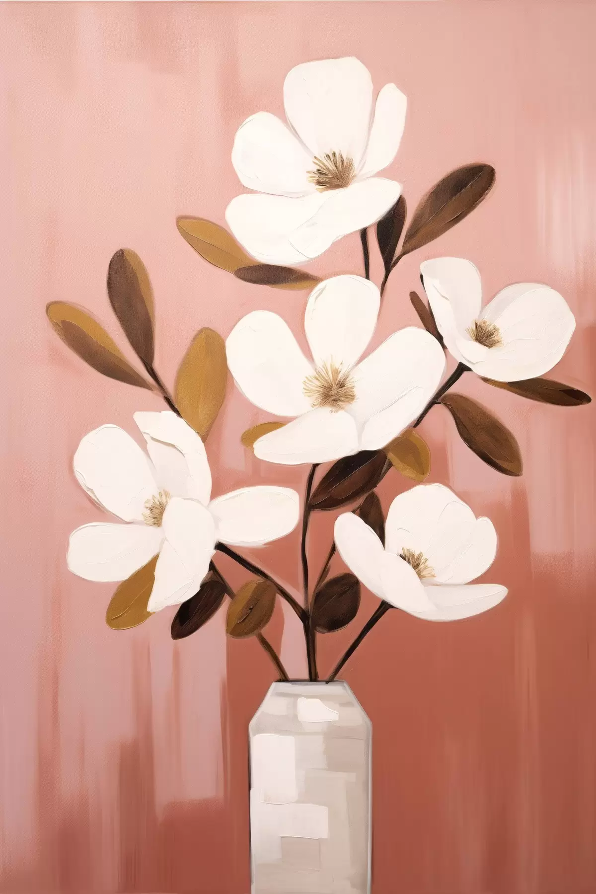 Poster Magnolie bianche in un vaso bianco: quadro floreale minimalista Nr f45254