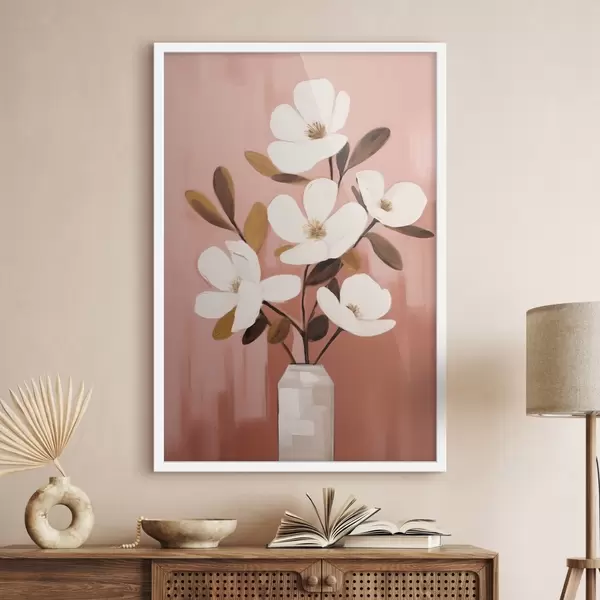 Poster Magnolie bianche in un vaso bianco: quadro floreale minimalista f45254