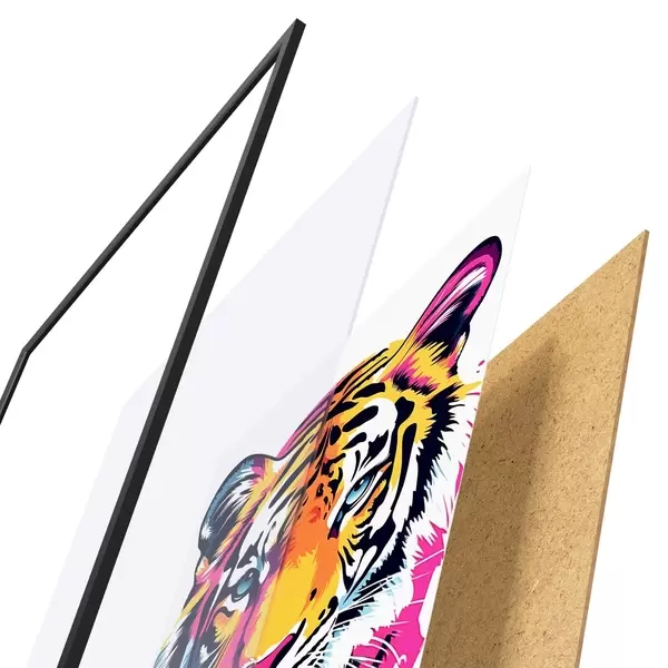 Il poster è composto da cornice, plexiglass, immagine stampata e supporto in truciolato. Il poster può essere immediatamente appeso alla parete grazie ai supporti sul retro.
