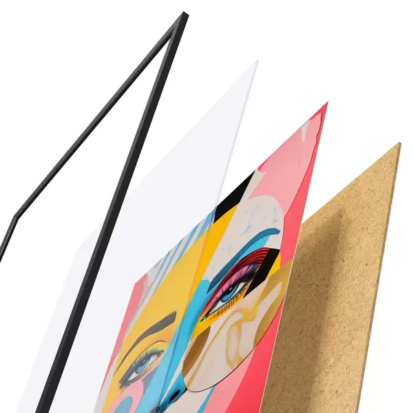Il poster è composto da cornice, plexiglass, immagine stampata e supporto in truciolato. Il poster può essere immediatamente appeso alla parete grazie ai supporti sul retro.