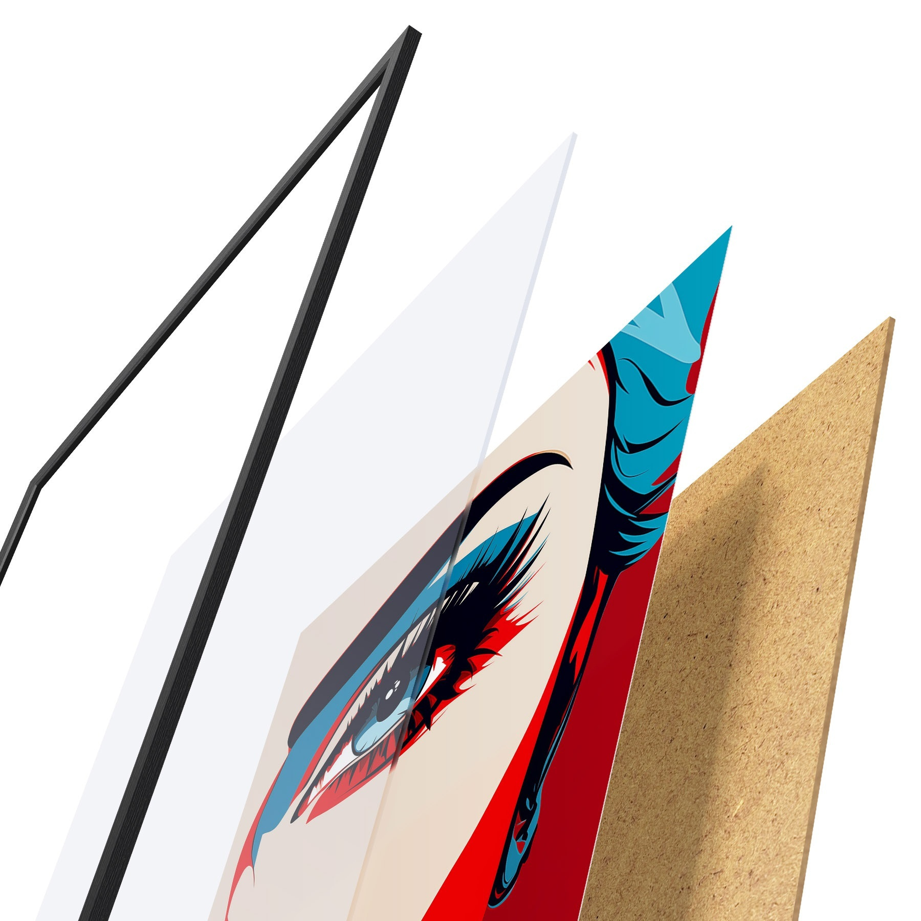 Il poster è composto da cornice, plexiglass, immagine stampata e supporto in truciolato. Il poster può essere immediatamente appeso alla parete grazie ai supporti sul retro.