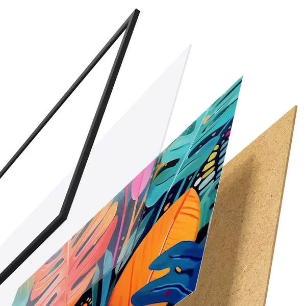 Il poster è composto da cornice, plexiglass, immagine stampata e supporto in truciolato. Il poster può essere immediatamente appeso alla parete grazie ai supporti sul retro.