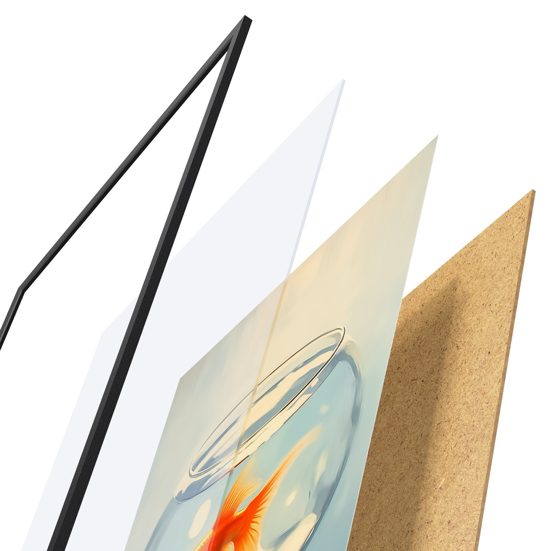 Il poster è composto da cornice, plexiglass, immagine stampata e supporto in truciolato. Il poster può essere immediatamente appeso alla parete grazie ai supporti sul retro.
