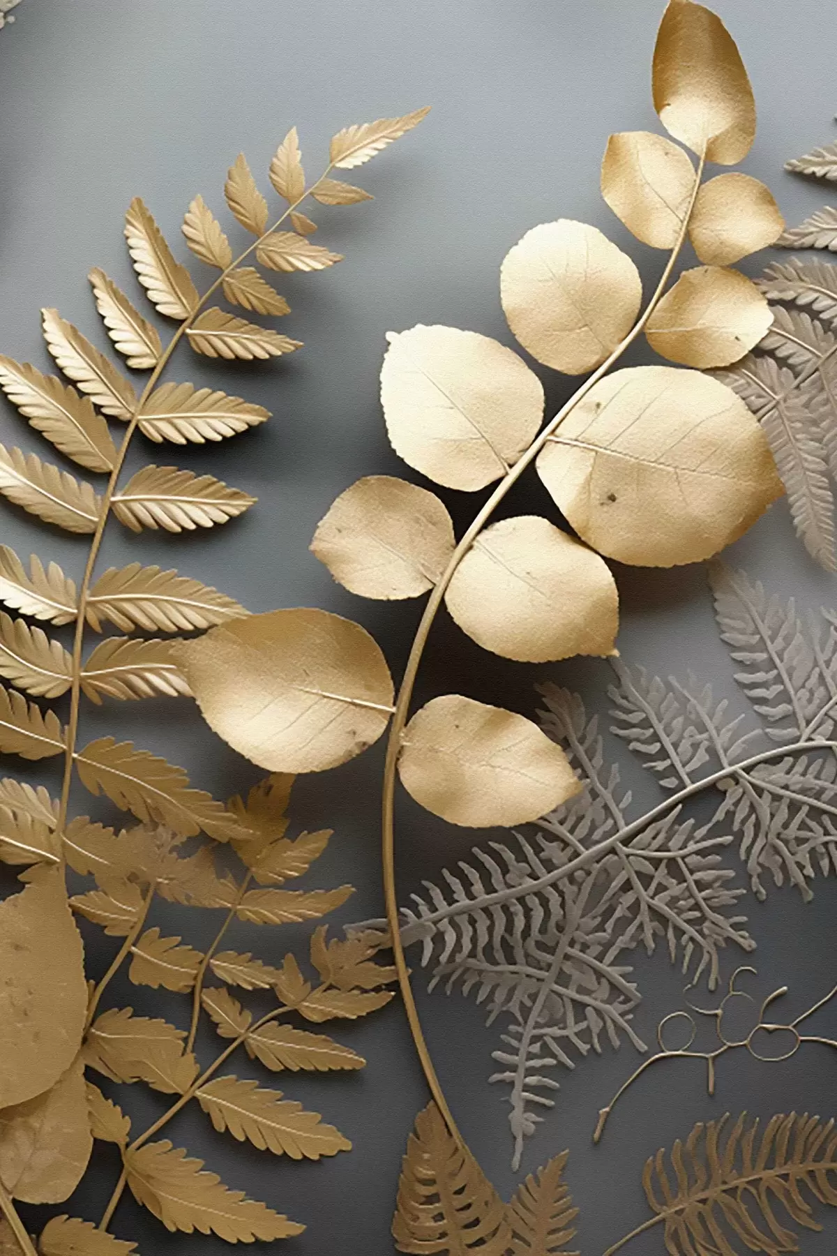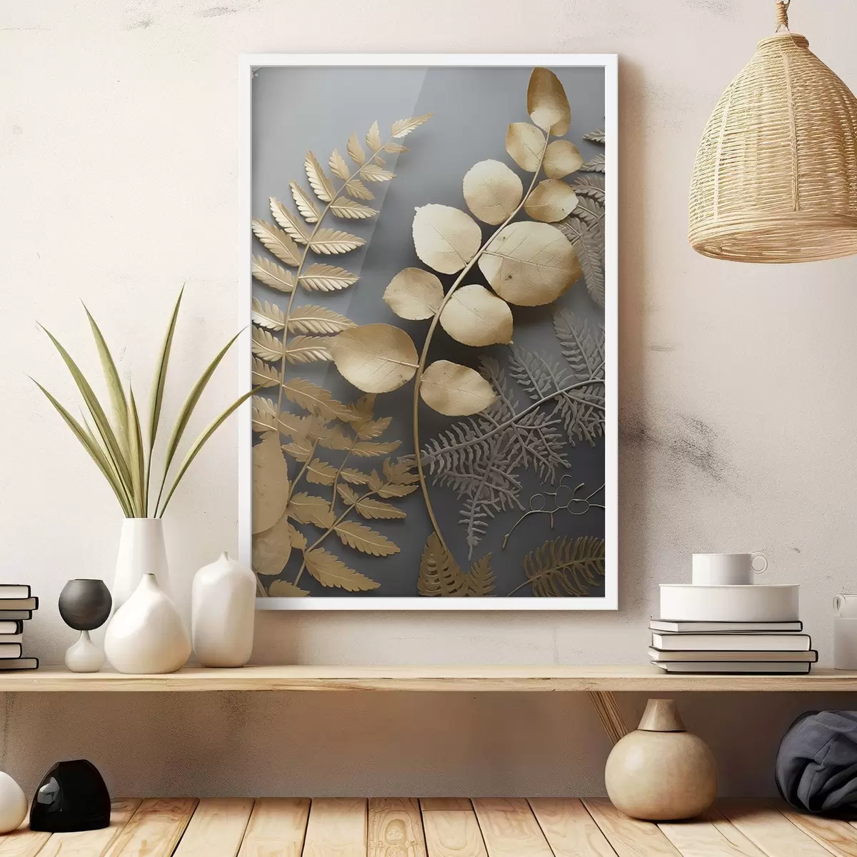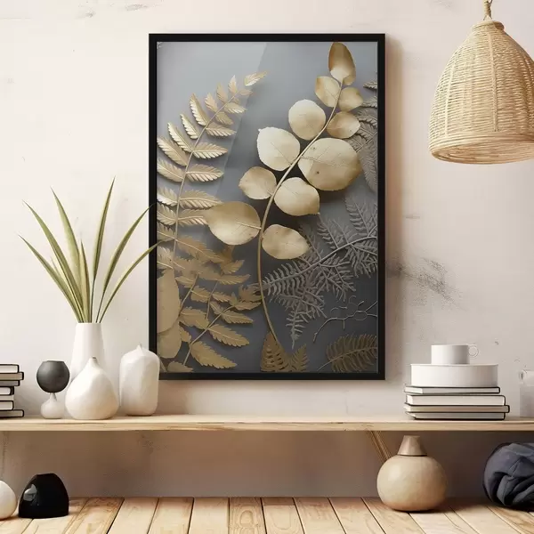 Poster Rami di felce ed eucalipto su sfondo scuro f45334
