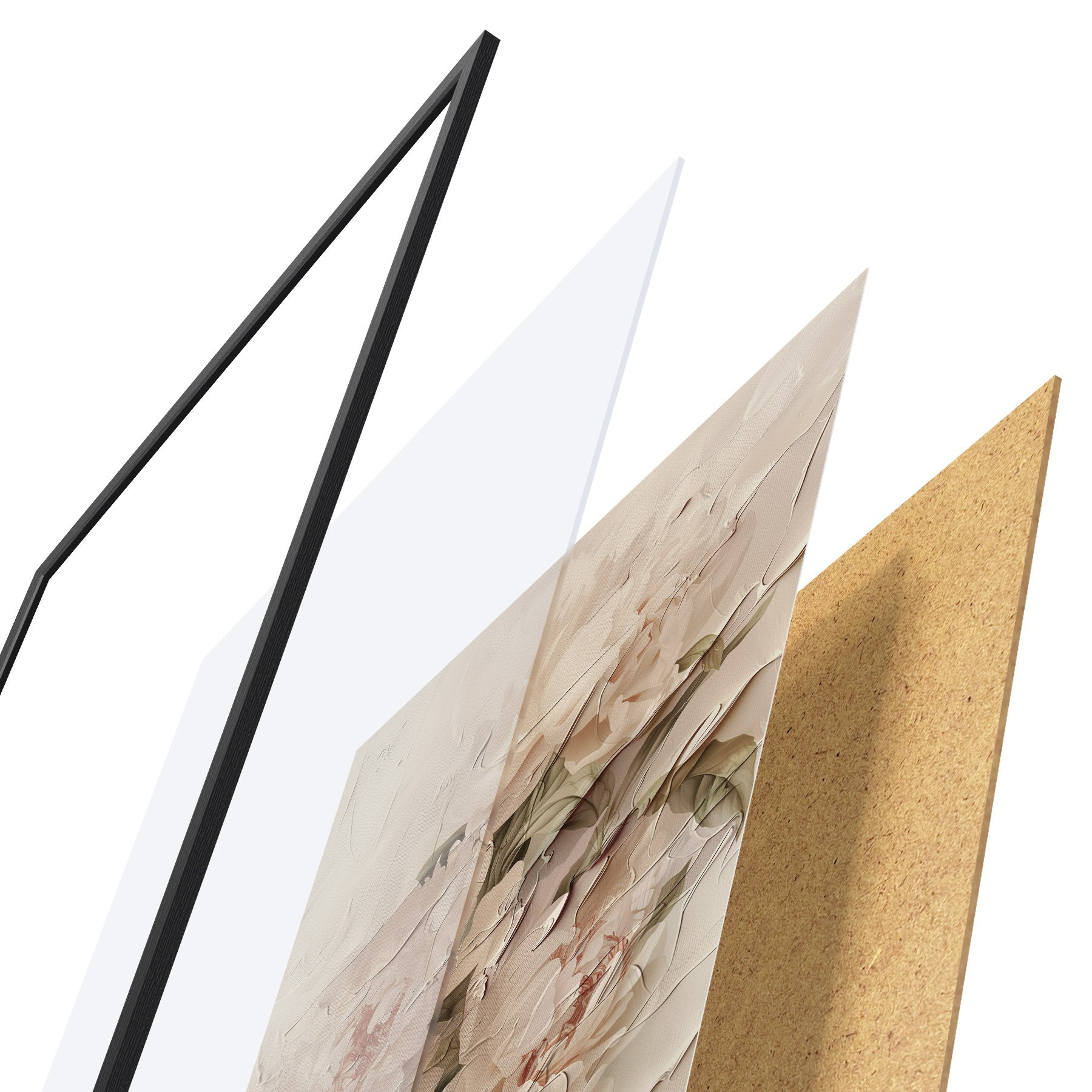 Il poster è composto da cornice, plexiglass, immagine stampata e supporto in truciolato. Il poster può essere immediatamente appeso alla parete grazie ai supporti sul retro.