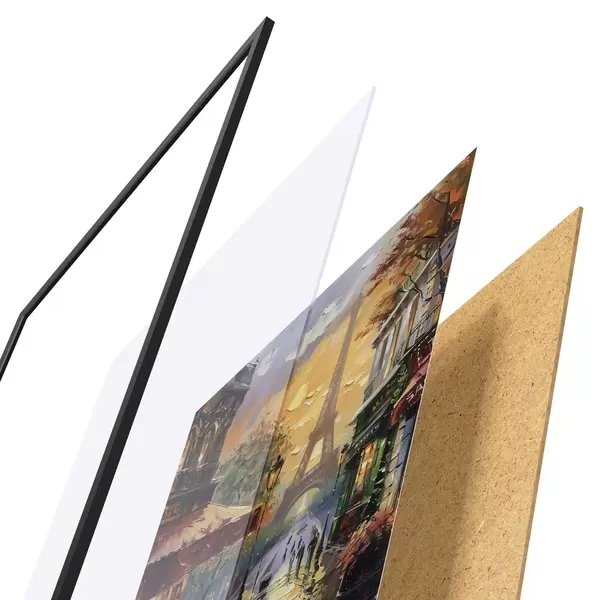 Il poster è composto da cornice, plexiglass, immagine stampata e supporto in truciolato. Il poster può essere immediatamente appeso alla parete grazie ai supporti sul retro.