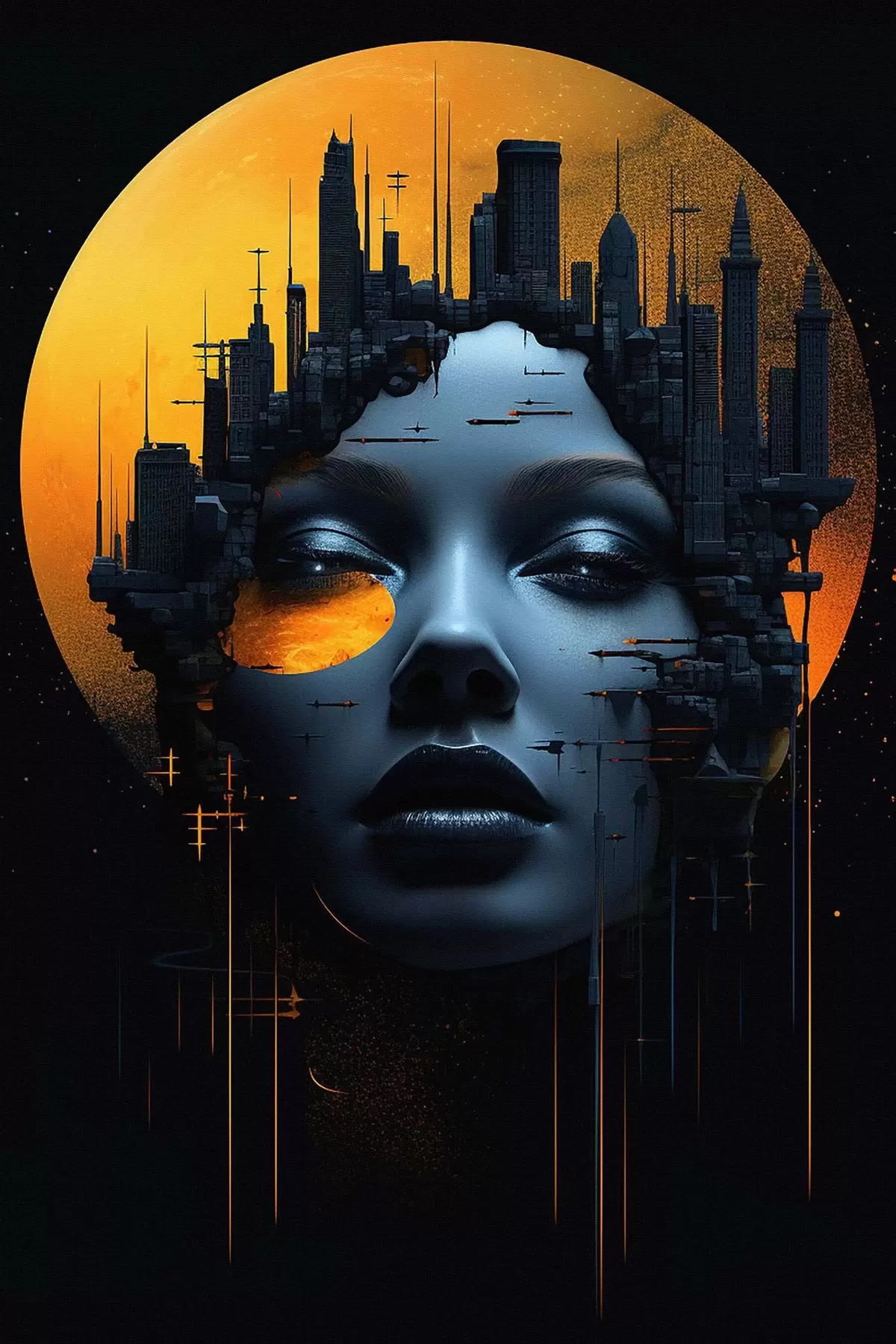 Poster Persone, volto di ragazza su sfondo cittadino, astratto Nr f45341