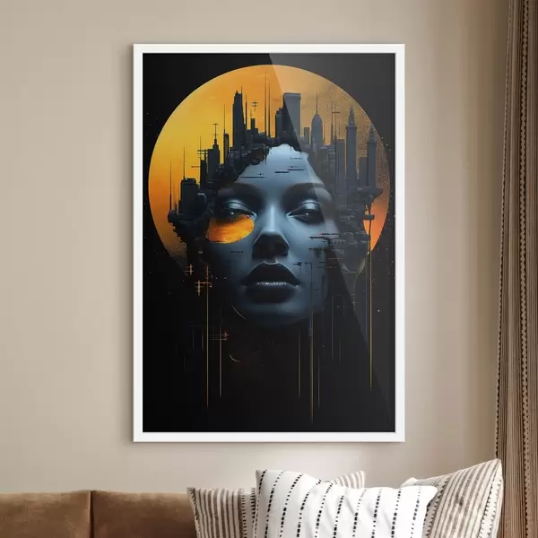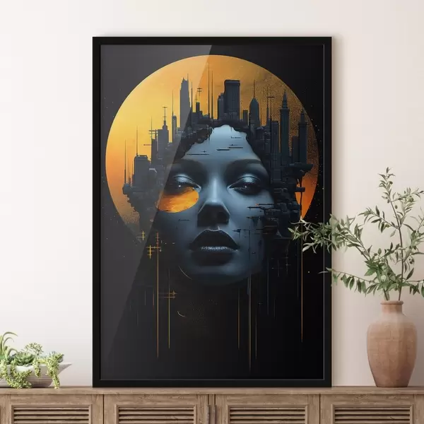 Poster Persone, volto di ragazza su sfondo cittadino, astratto f45341