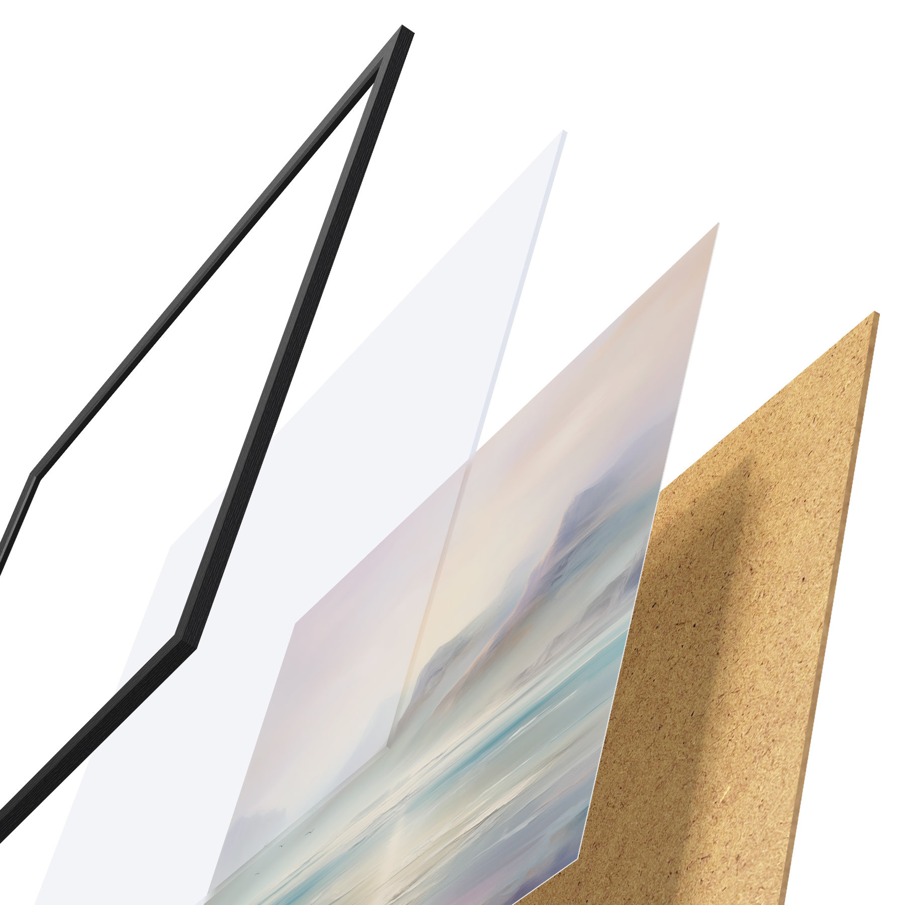 Il poster è composto da cornice, plexiglass, immagine stampata e supporto in truciolato. Il poster può essere immediatamente appeso alla parete grazie ai supporti sul retro.