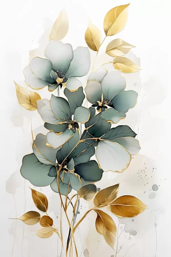 Poster Ramo astratto con fiori e foglie Nr f45367