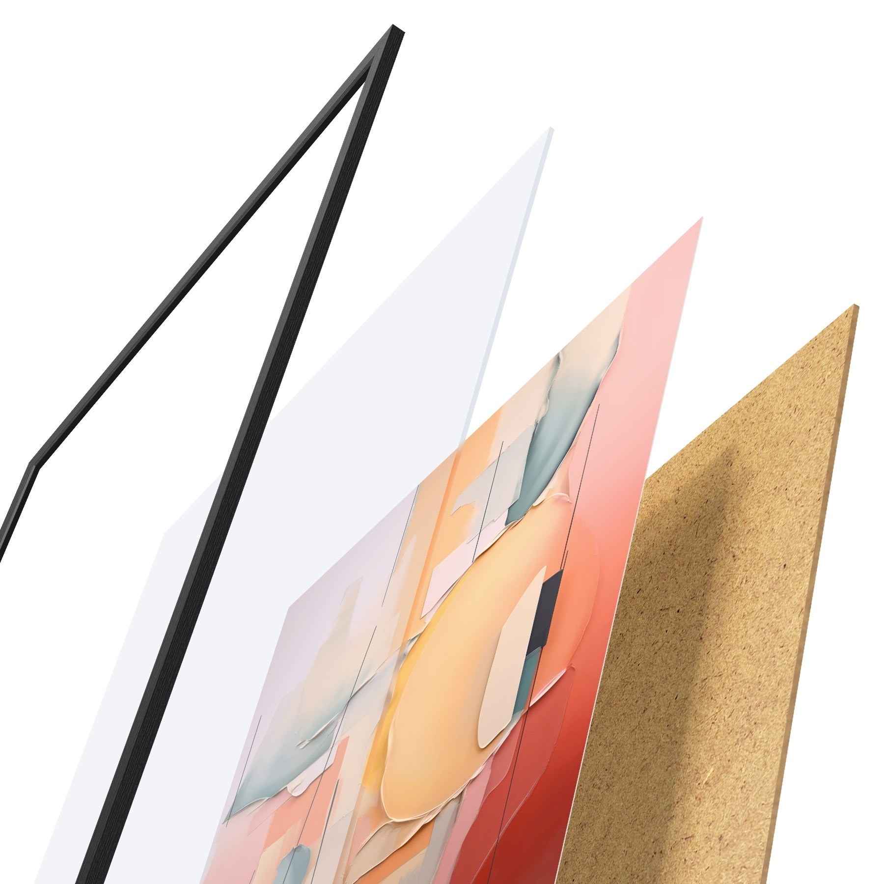 Il poster è composto da cornice, plexiglass, immagine stampata e supporto in truciolato. Il poster può essere immediatamente appeso alla parete grazie ai supporti sul retro.