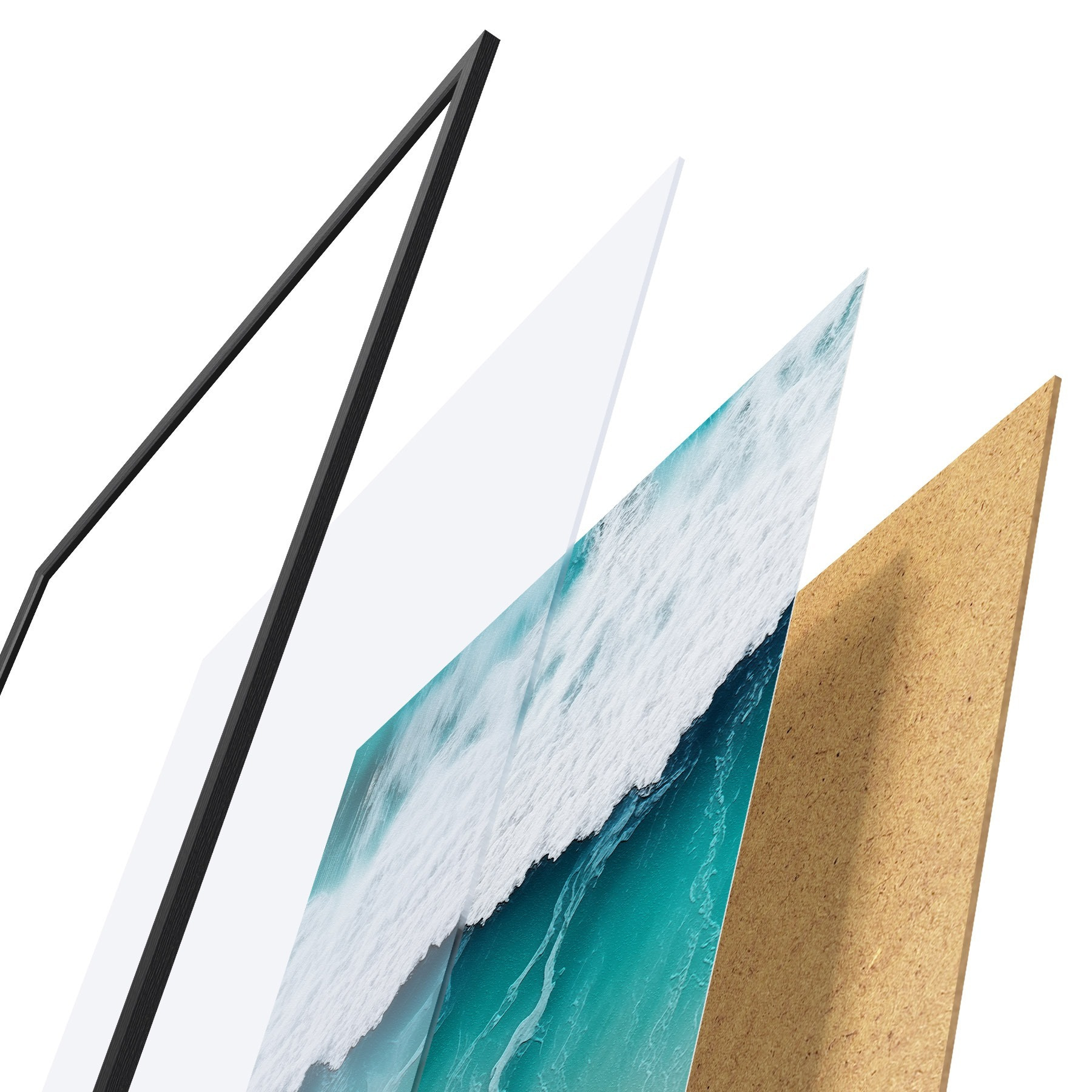Il poster è composto da cornice, plexiglass, immagine stampata e supporto in truciolato. Il poster può essere immediatamente appeso alla parete grazie ai supporti sul retro.