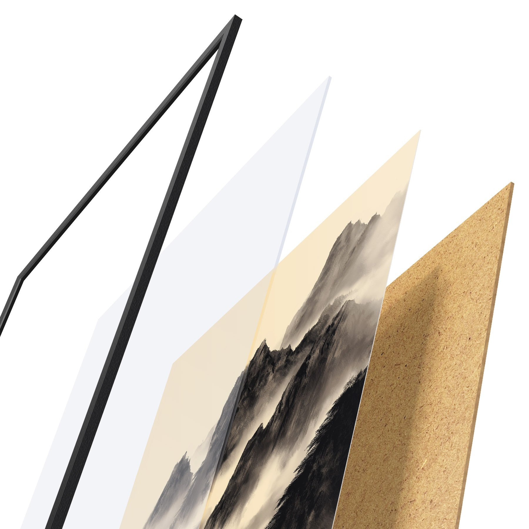 Il poster è composto da cornice, plexiglass, immagine stampata e supporto in truciolato. Il poster può essere immediatamente appeso alla parete grazie ai supporti sul retro.