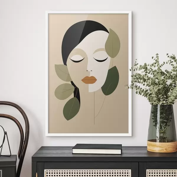 Poster Ragazza con foglie f45389