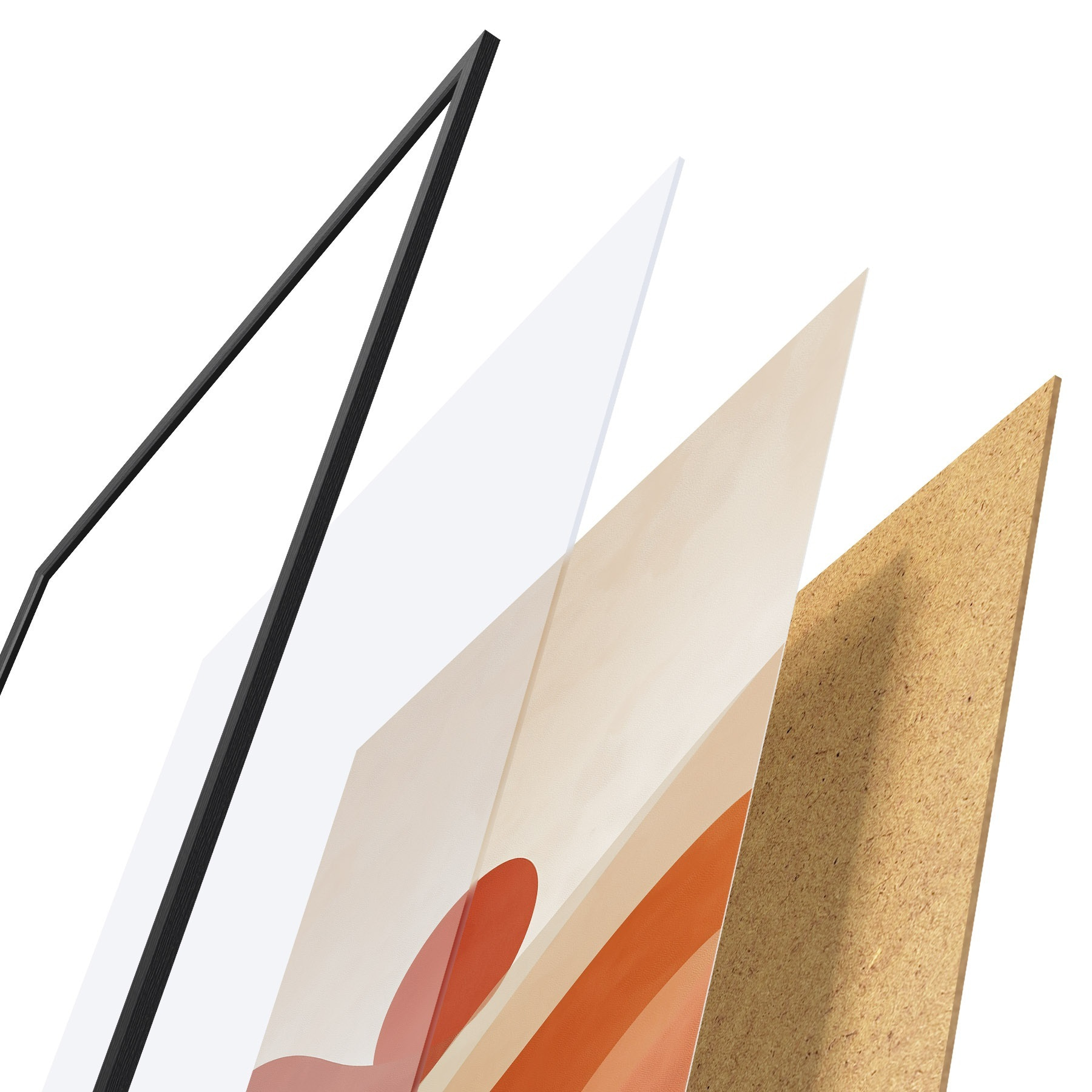 Il poster è composto da cornice, plexiglass, immagine stampata e supporto in truciolato. Il poster può essere immediatamente appeso alla parete grazie ai supporti sul retro.