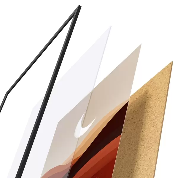 Il poster è composto da cornice, plexiglass, immagine stampata e supporto in truciolato. Il poster può essere immediatamente appeso alla parete grazie ai supporti sul retro.