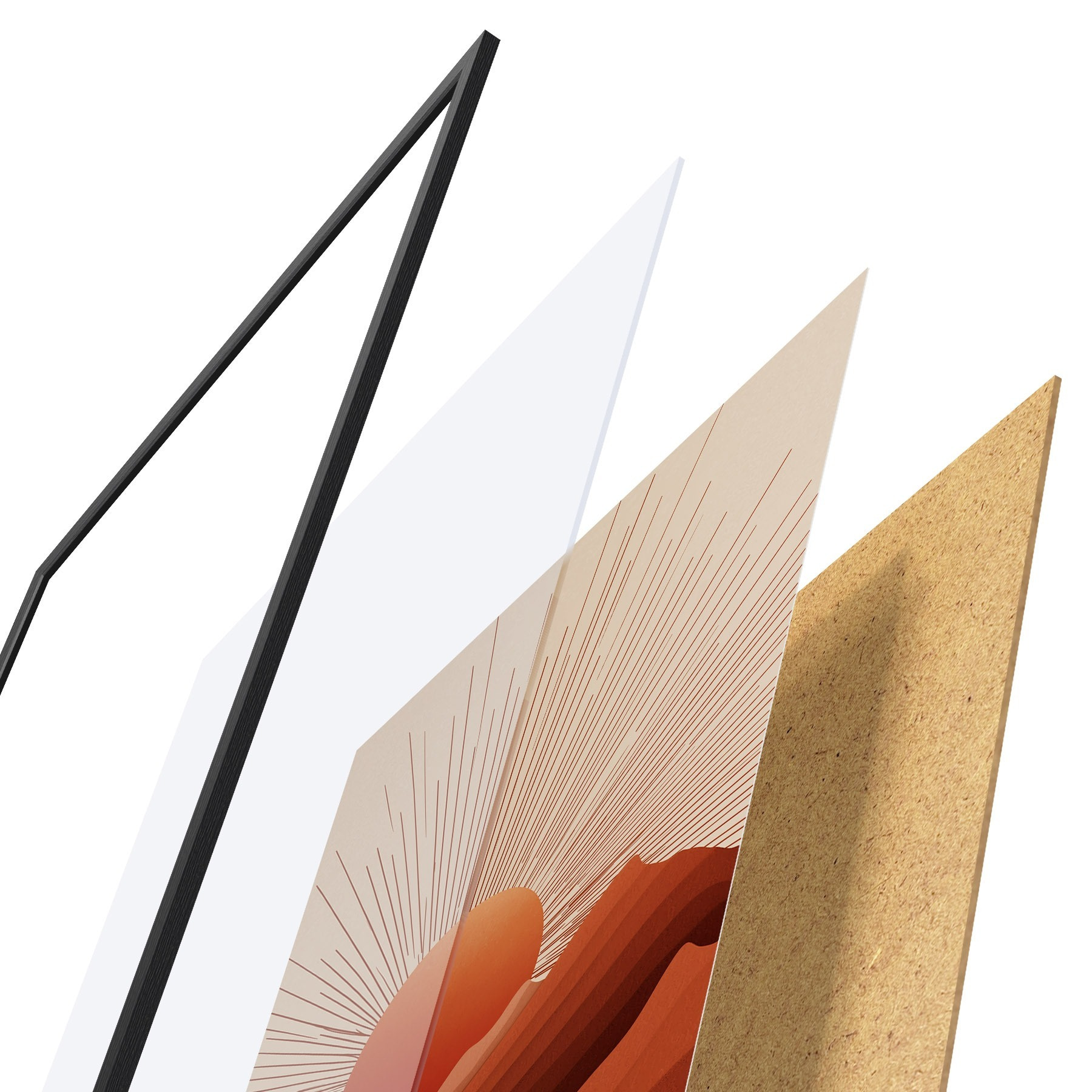 Il poster è composto da cornice, plexiglass, immagine stampata e supporto in truciolato. Il poster può essere immediatamente appeso alla parete grazie ai supporti sul retro.