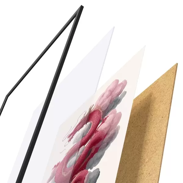 Il poster è composto da cornice, plexiglass, immagine stampata e supporto in truciolato. Il poster può essere immediatamente appeso alla parete grazie ai supporti sul retro.