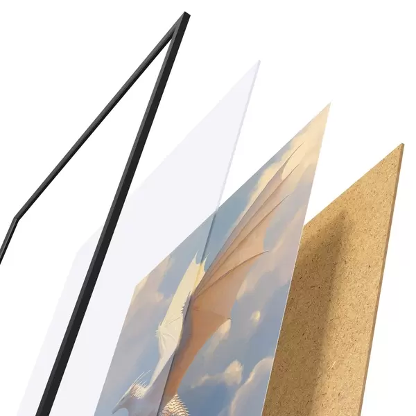 Il poster è composto da cornice, plexiglass, immagine stampata e supporto in truciolato. Il poster può essere immediatamente appeso alla parete grazie ai supporti sul retro.