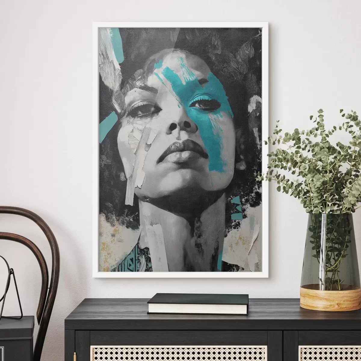 Poster Ritratto a tecnica mista con frammenti di colore e texture Nr f45416