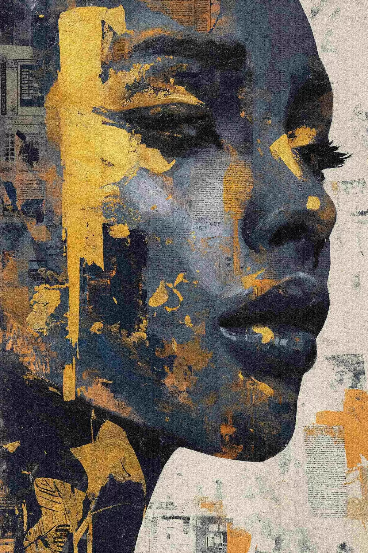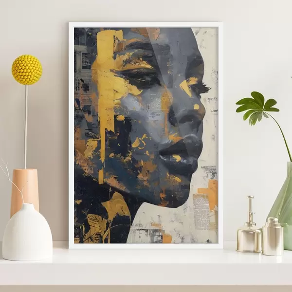 Poster Ritratto a tecnica mista con frammenti di giornale e pennellate decorative f45420